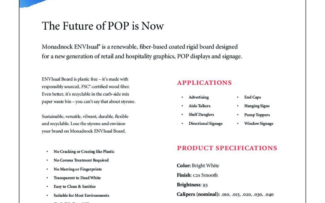 As retailers and brands work to reduce reliance on vinyl, synthetics, and single-use plastics in store environments, demand continues to grow for signage materials that meet sustainability goals without compromising visual impact. Monadnock Paper Mills, Inc. offers...